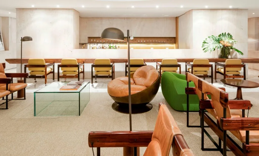 - Polished mid-century Brazilian design – from a Burle Marx-inspired vertical garden to classic furniture pieces and a chic brass bar.