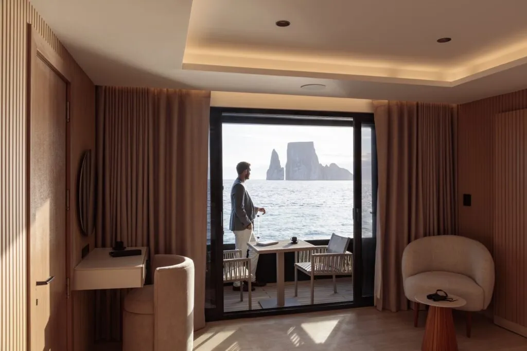 - Twelve state-of-the-art suites, ranging from 22 – 70m2, each equipped with a comfortable walk-in closet and personal jacuzzi overlooking the ever-changing Galapagos landscape.