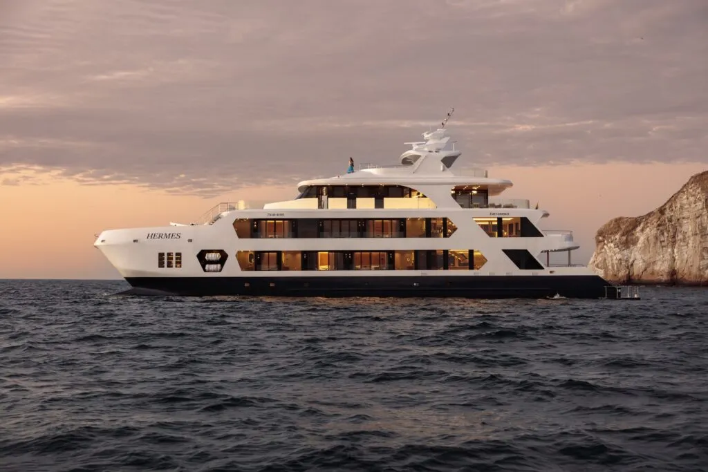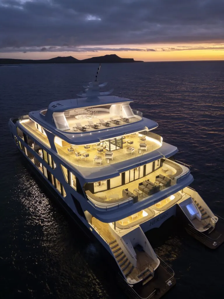 Designed specifically to explore the Enchanted Isles, Hermes is the latest vessel to enter the Galapagos yachting scene, and its first ultra-luxury catamaran. Launched in 2025, the 50-metre vessel accommodates up to 20 guests. Her cutting-edge, eco-friendly design includes lavish amenities like a full-service spa and personal jacuzzi in each of her twelve suites, and a crew of seventeen offers near one-to-one service.