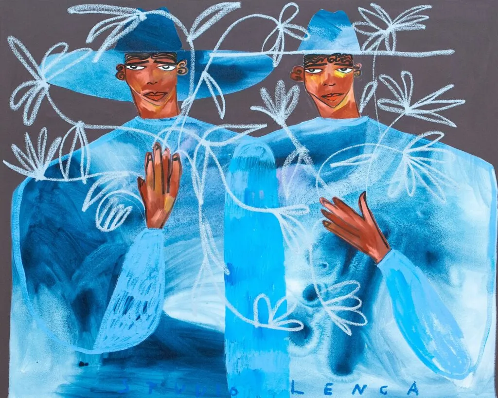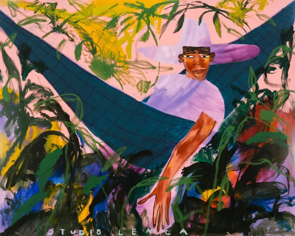 Now based in Margate at Tracey Emin’s TKE Studios, his work draws on personal history and folklore, with bold, self-possessed figures that push back against invisibility and reframe what Salvadoran identity can look like.